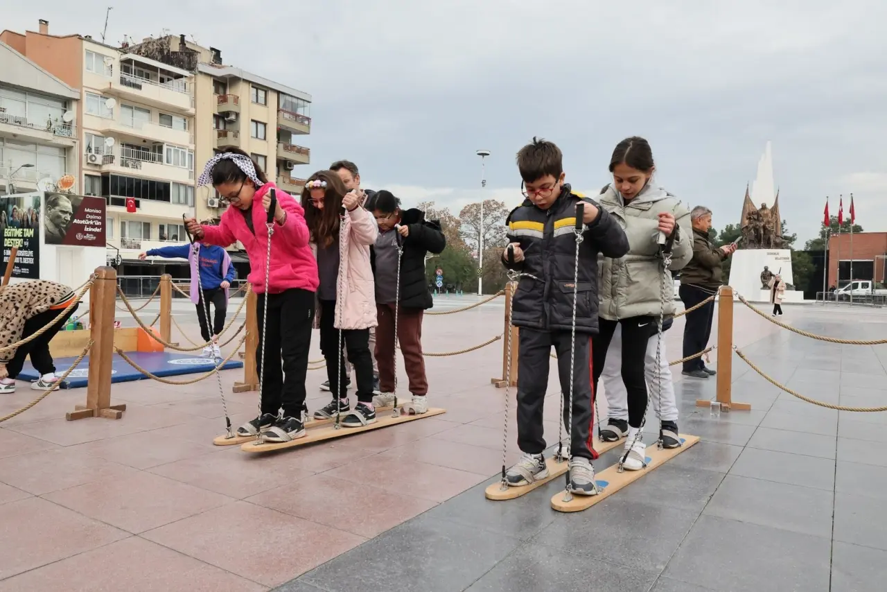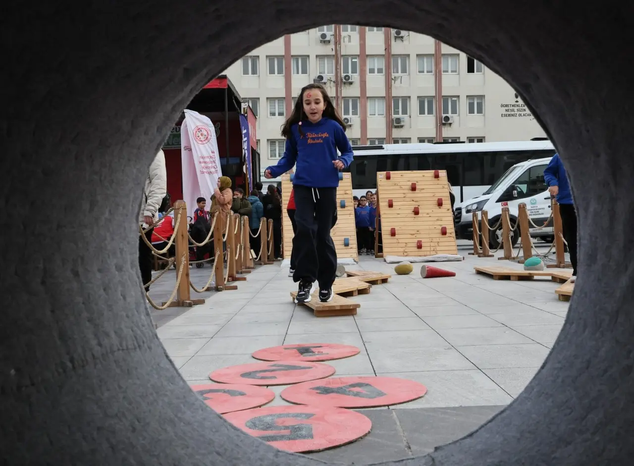 Manisa Cumhuriyet Meydanı'nda kurulan etkinlik alanında binlerce öğrenci bir araya geldi. Mangala, halat çekme ve çuval yarışı gibi oyunlarla eğlenceli vakit geçirdiler.