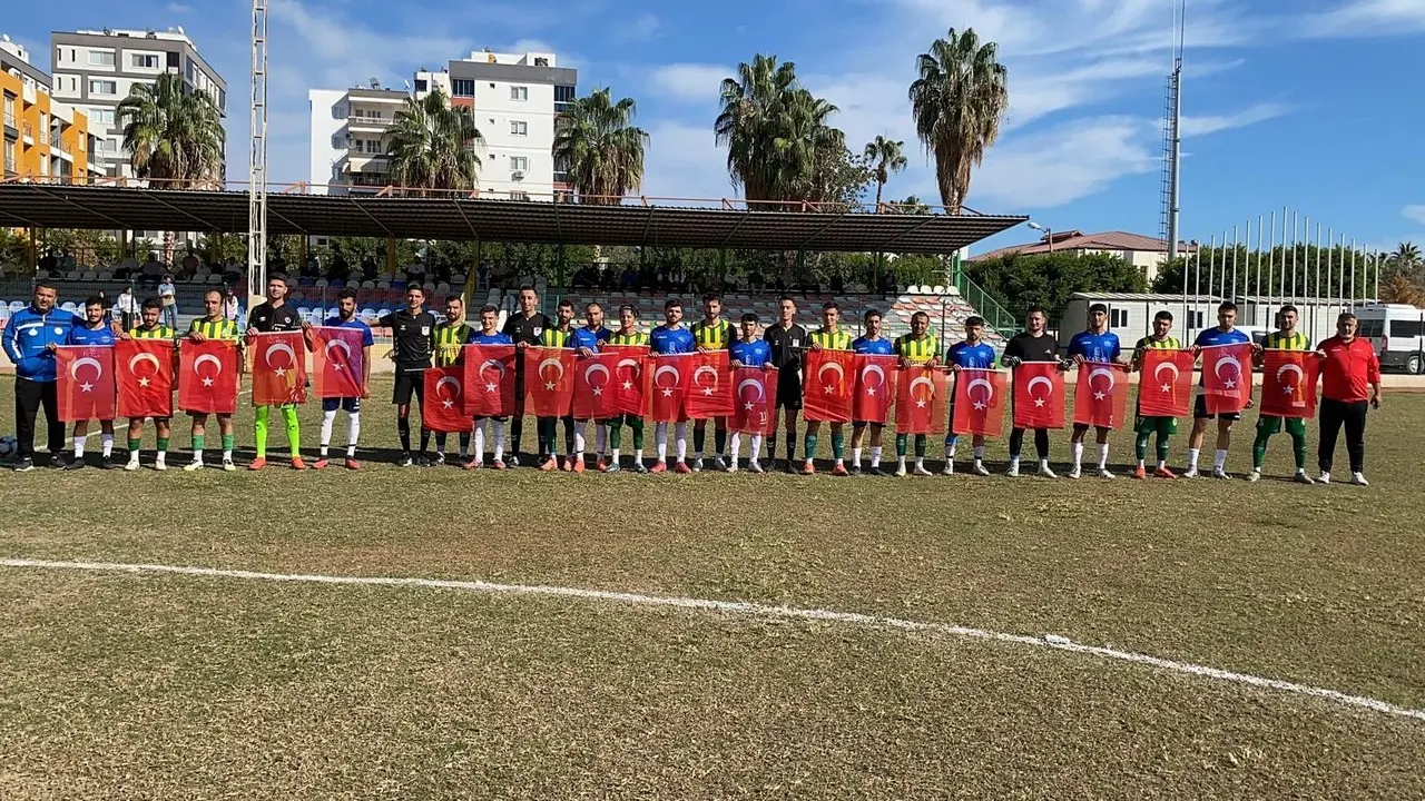 Erdemli Spor ve Akdenizgücü Spor arasında oynanan maçta sporcular, milli birlik mesajı verdi. Şehitlerin anısına Türk bayraklarıyla sahaya çıkıldı.
