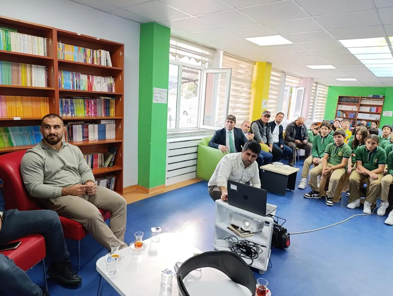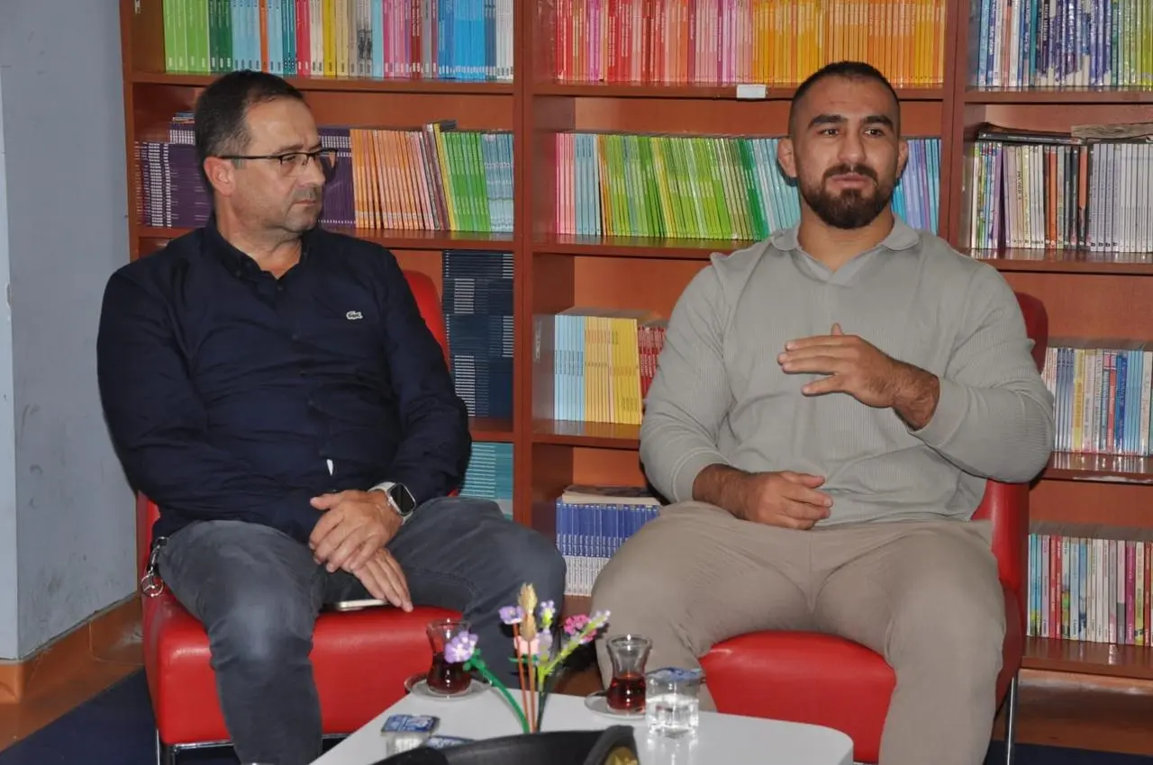Dünya şampiyonu güreşçi, öğrencilere başarının sırlarını anlattı. Disiplinli çalışmanın önemini vurgulayarak kendi hikayesinden örnekler verdi.