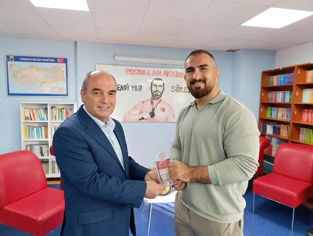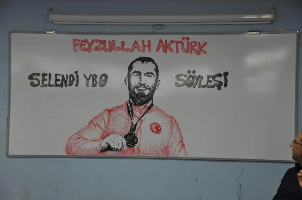 Milli güreşçi Feyzullah Aktürk, Selendi Yatılı Bölge Okulu'nda öğrencilerle bir araya gelerek deneyimlerini paylaştı.