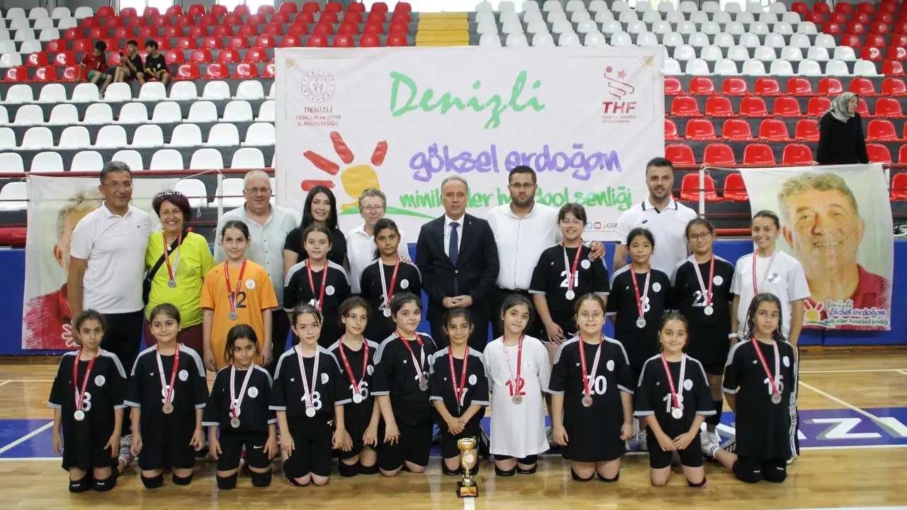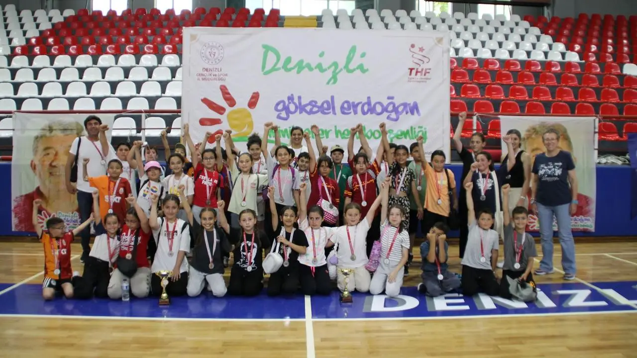 Denizli'de düzenlenen Minik Eller Hentbol Şenliği'nde dört farklı ilden gelen 350 sporcu mücadele ederek ödüllerini aldı.