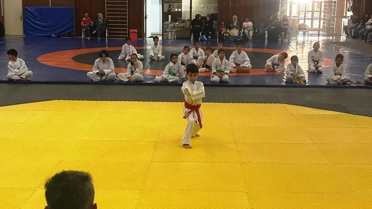 Körfez Belediyesi Çok Amaçlı Spor Salonu'nda düzenlenen kuşak sınavında 23 minik karateci başarılı oldu.