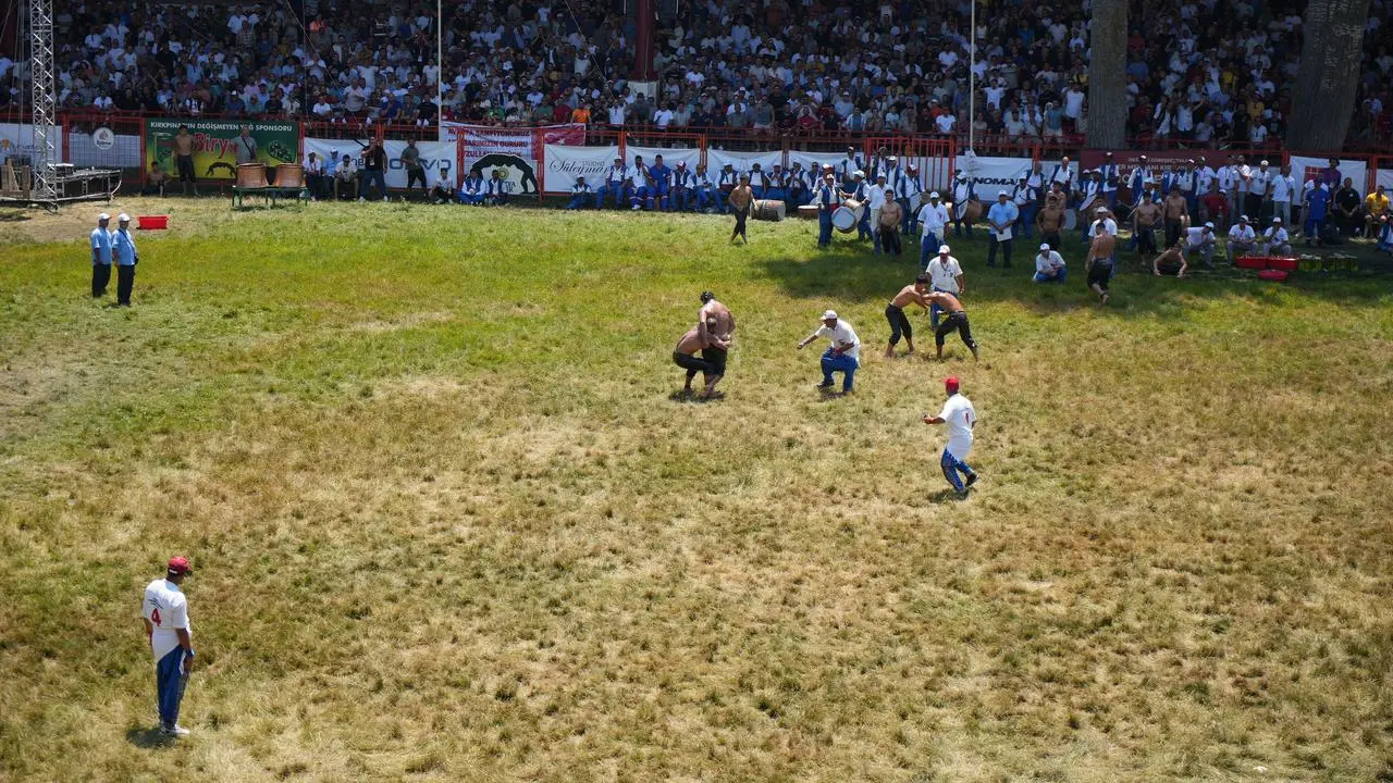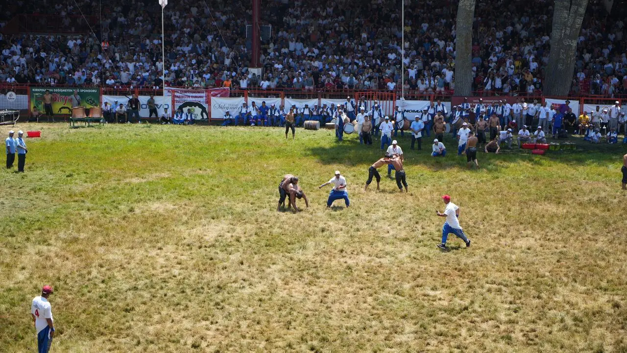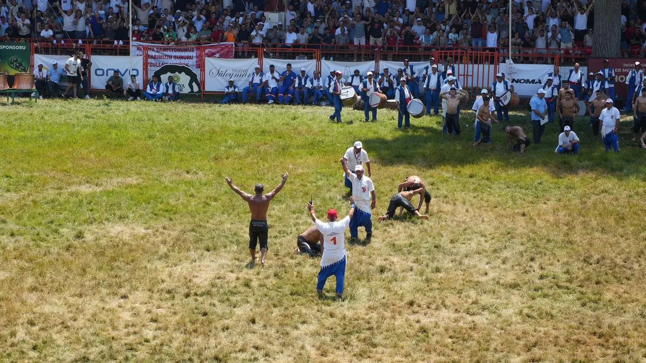 Sarayiçi Er Meydanı'nda başpehlivanlar kura çekimiyle eşleşti. Güreşçiler geleneksel peşrev gösterisiyle dualı çayıra çıktı.