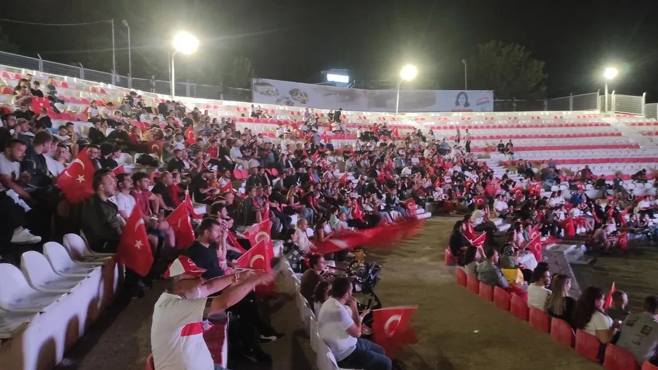 Tekirdağ Sahil Amfi Tiyatro Alanı'nda kurulan dev ekranda maçı izleyen vatandaşlar, galibiyetle büyük sevinç yaşadı. Maçın bitiş düdüğüyle alanda coşku doruğa ulaştı.
