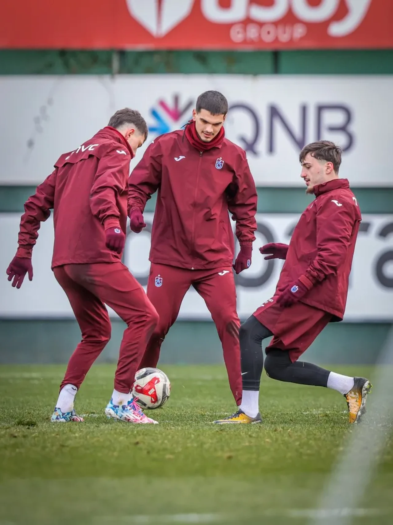Diğer oyuncular ısınma sonrası pas, rondo ve dar alanda oyun çalışmalarıyla maç öncesi formlarını artırmaya odaklandı.