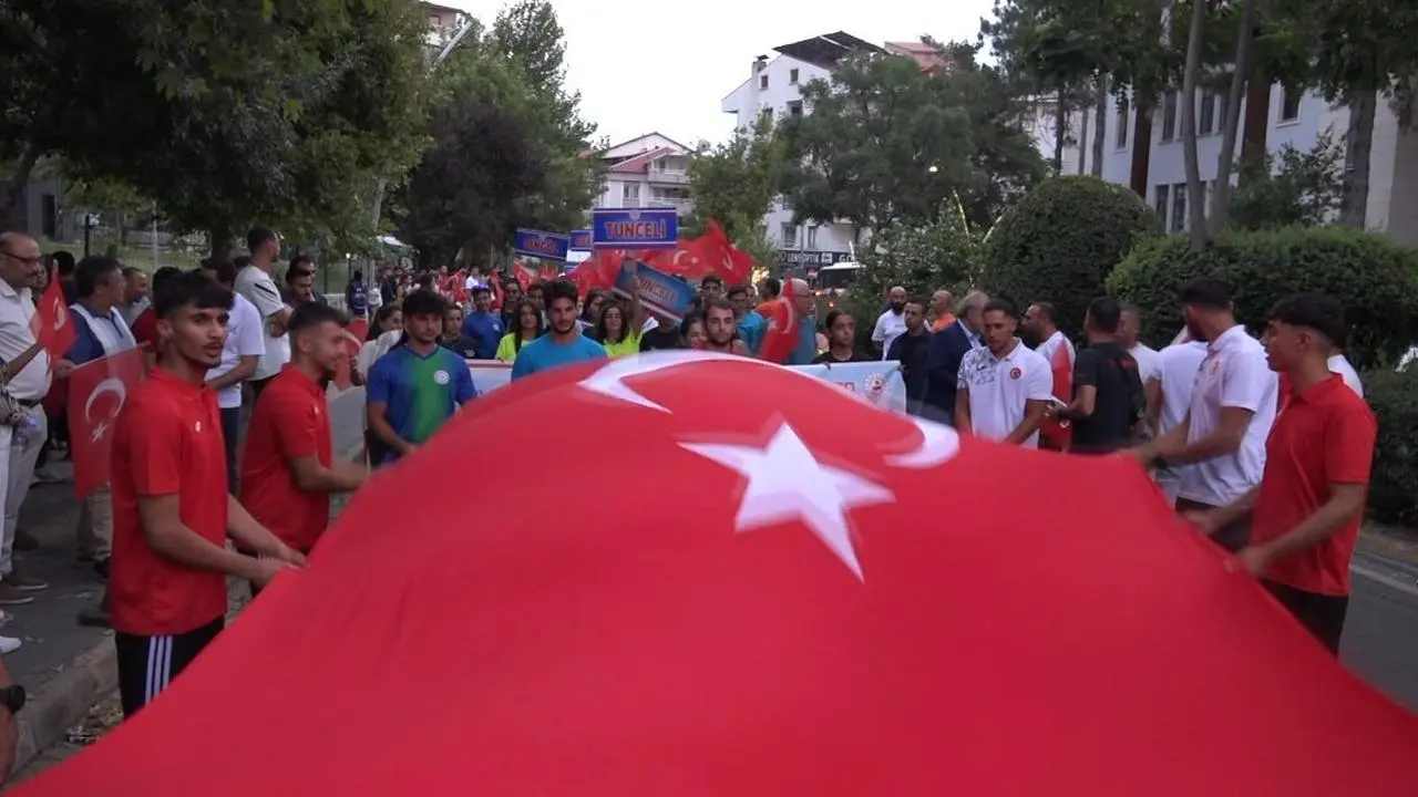 Yürüyüşün ardından sporcular ve antrenörler hep birlikte halay çekerek coşkuyu artırdı.