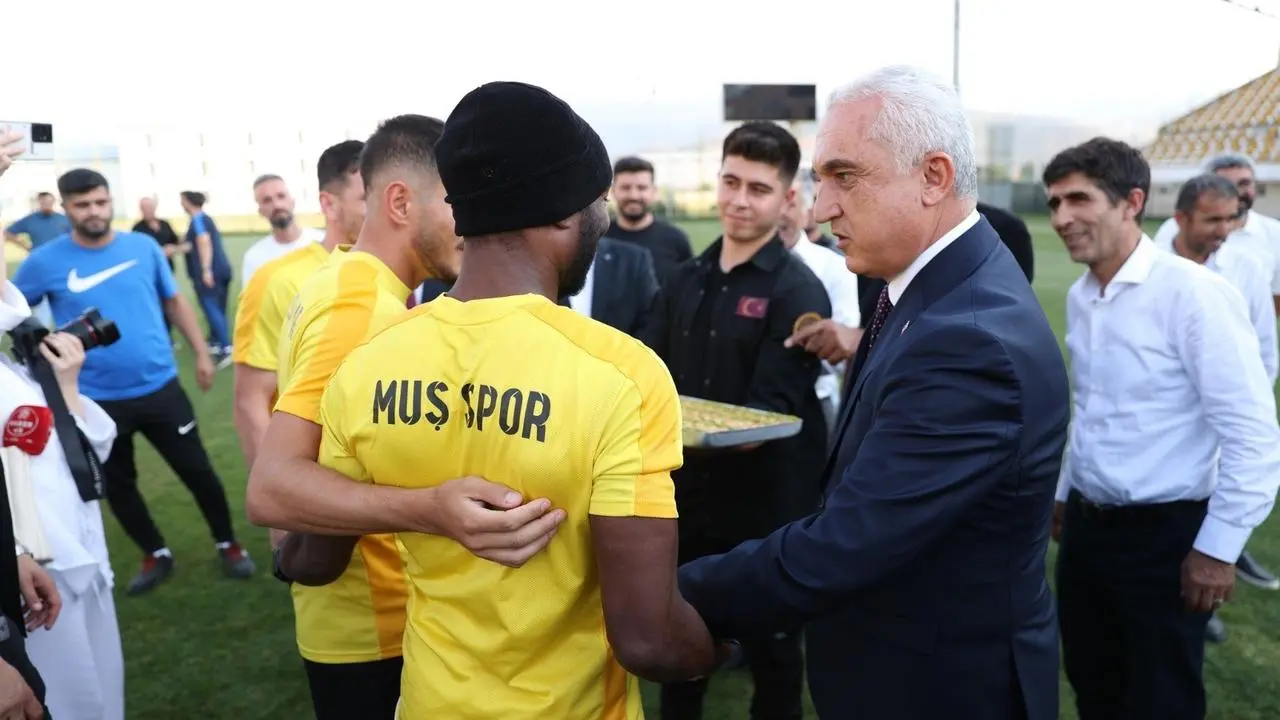 Vali Avni Çakır, Muş Şehir Stadyumu'nda Muşspor'un antrenmanını takip etti. Oyunculara tatlı ikram ederek takımın moralini yükseltti.