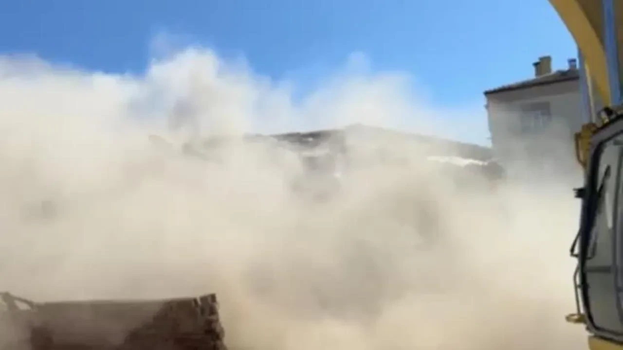 Kahramanmaraş merkezli depremlerin ardından Elazığ'da hasar tespit çalışmaları sonucunda ağır hasarlı olduğu belirlenen binaların yıkım çalışmaları devam ediyor. Sürsürü Mahallesinde yer alan 4 katlı ve 8 daireli bina, kontrollü yıkım çalışmaları kapsamında iş makineleri yardımıyla yıkıldı. Çevre güvenliği alınarak gerçekleştirilen yıkım işlemi vatandaşlar tarafından cep telefonuyla kaydedildi.