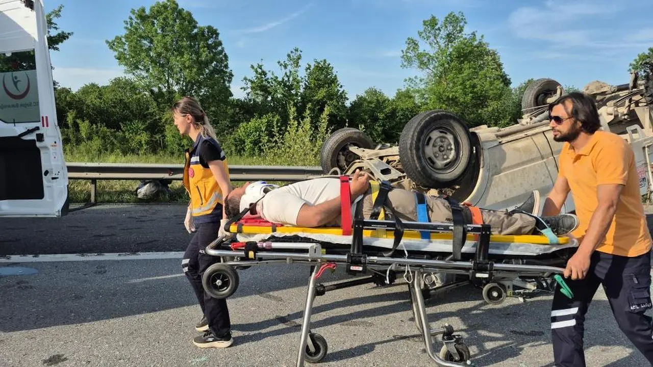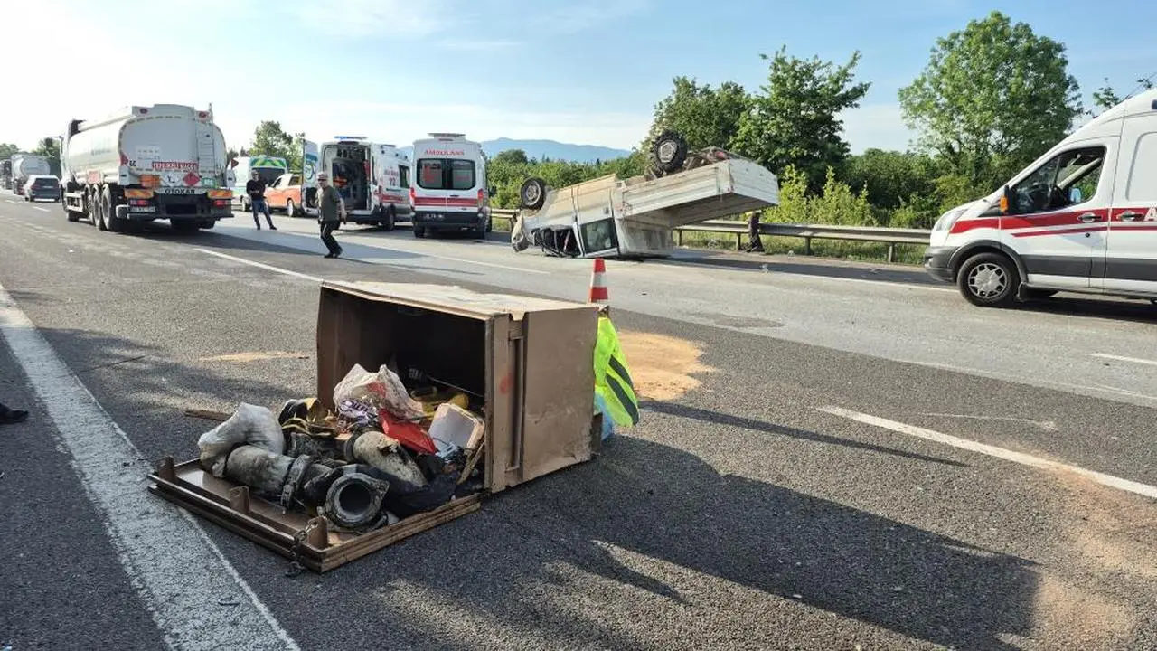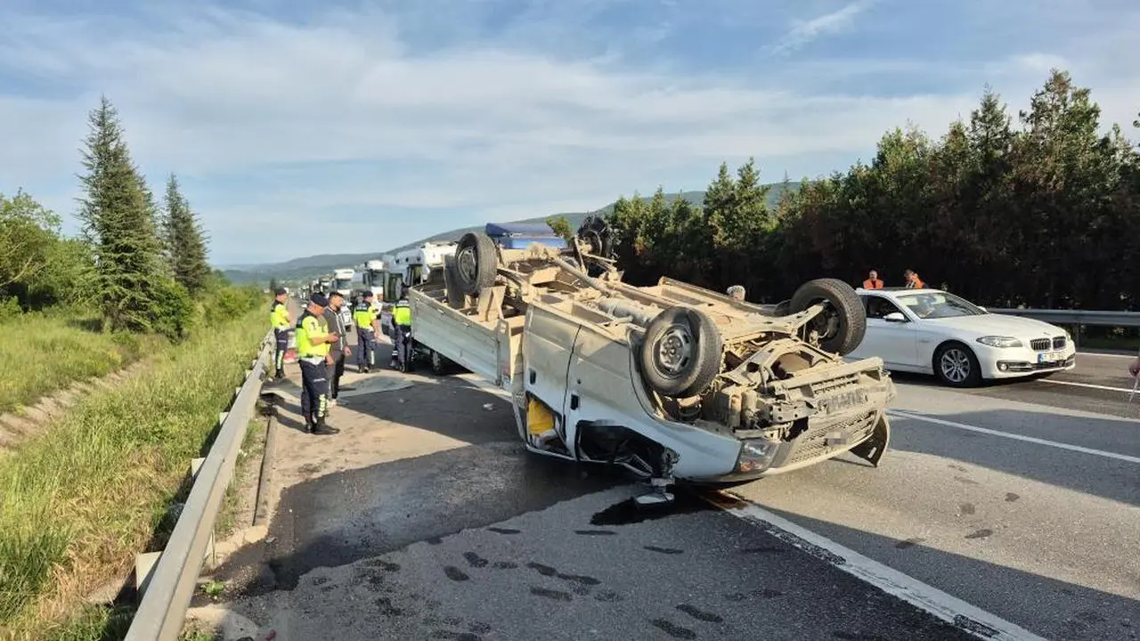 Ankara'dan İstanbul yönüne giden pikap tipi aracın lastiğinin patlaması sonucu sürücü direksiyon hakimiyetini kaybetti. Kontrolden çıkan araç yolda takla attı.