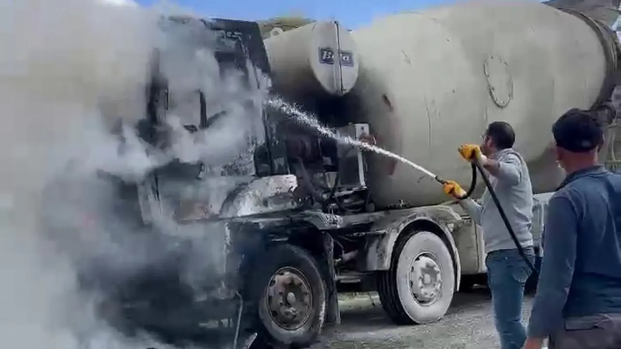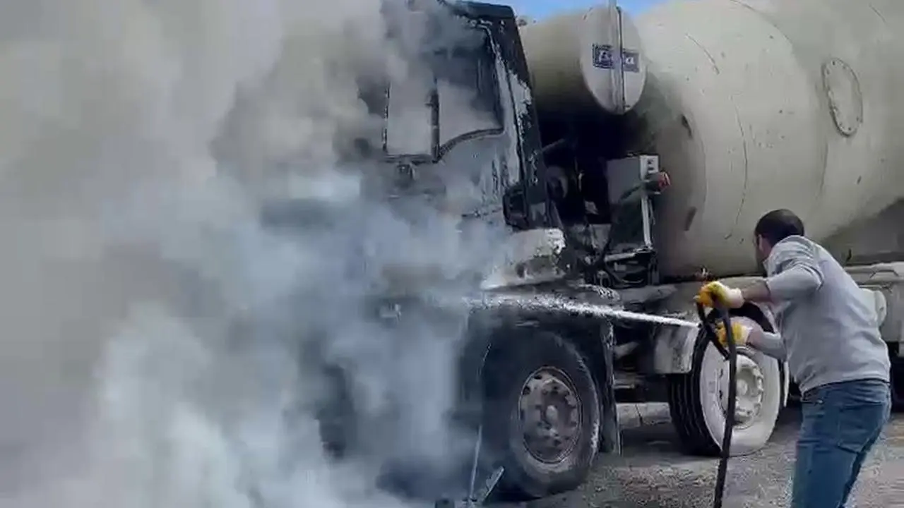 Beton mikserinin motor bölümünde başlayan yangın, kısa sürede aracın ön kısmına yayıldı. Sürücü durumu fark eder etmez aracı güvenli bir noktaya çekerek yardım çağırdı.