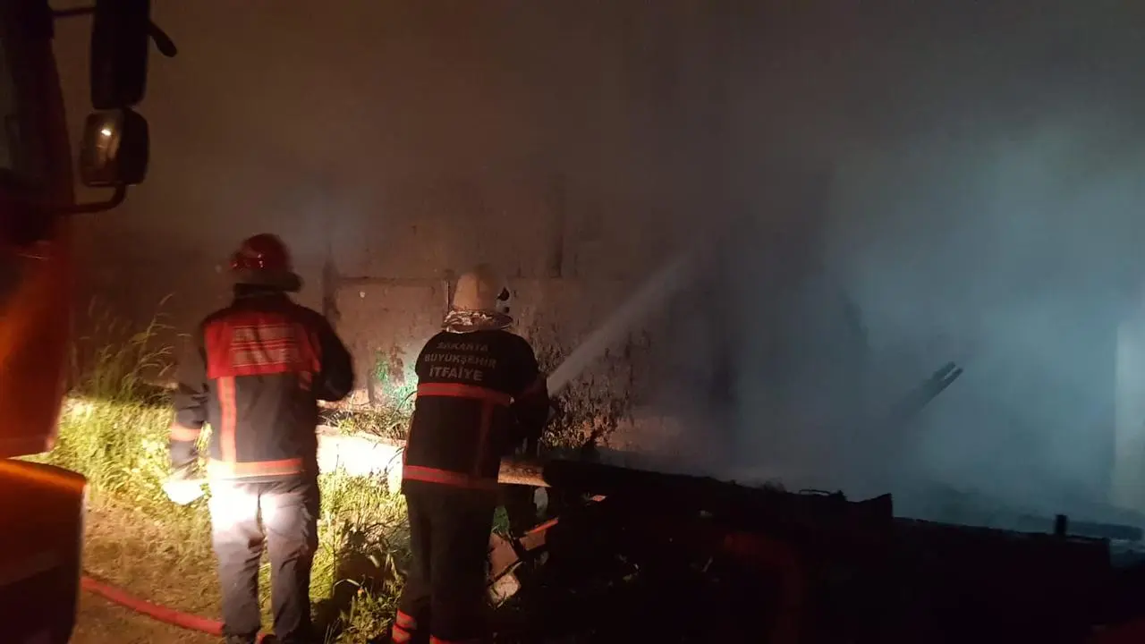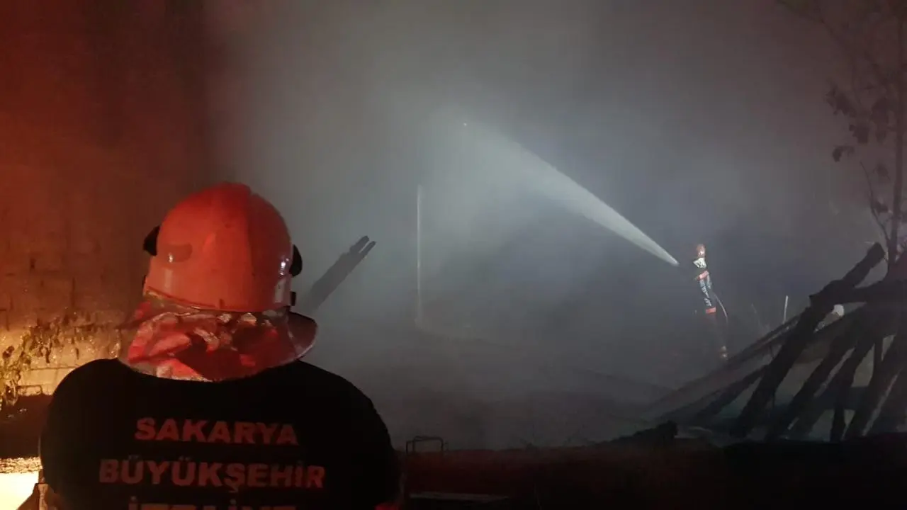 Sakarya'nın Taraklı ilçesinde samanlıkta çıkan yangın ahşap evi küle çevirirken, itfaiye ekipleri müdahale etti.