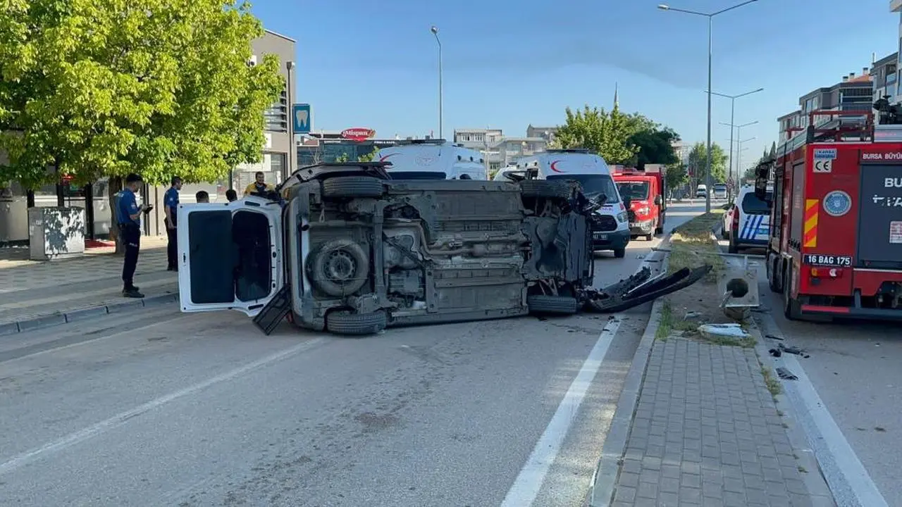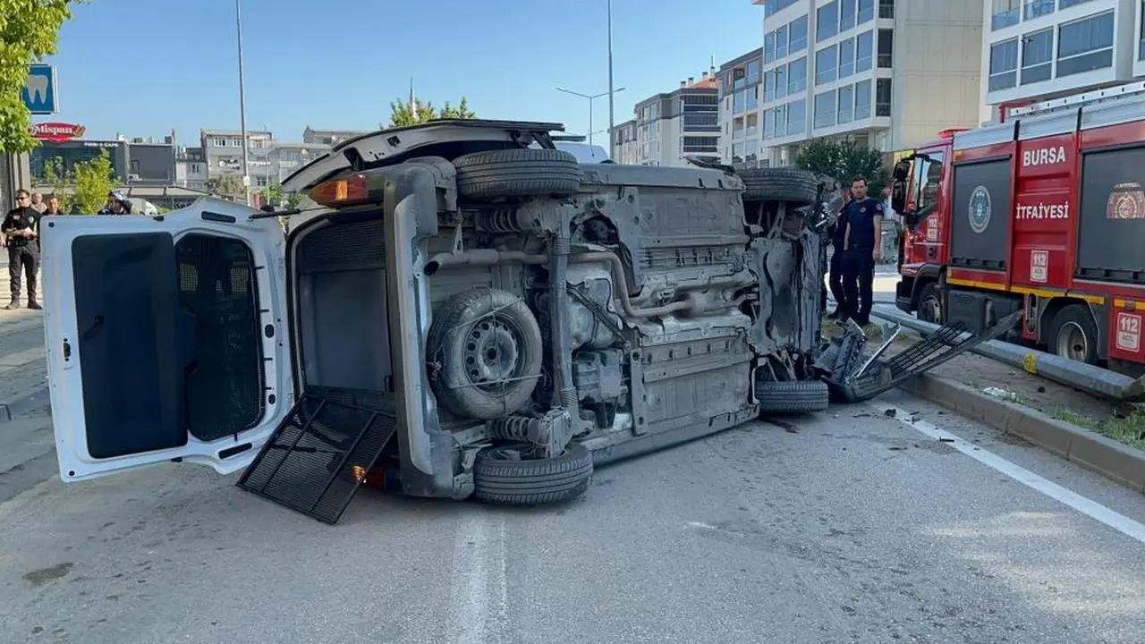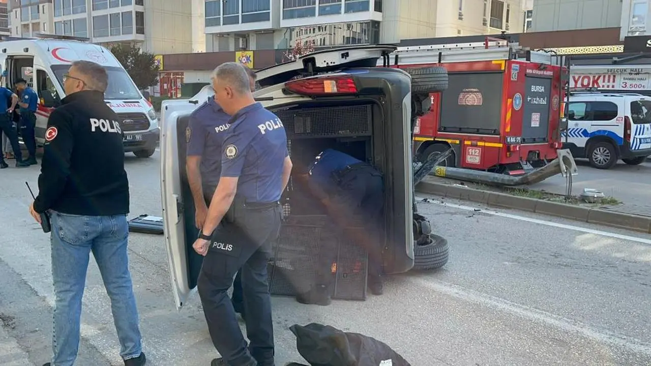 Bursa'da kadına şiddet ihbarından dönen polis aracı takla attı: 2'si polis 4 yaralı