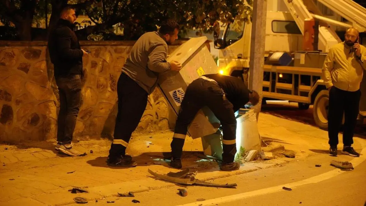 Edirne'de feci kaza: Kontrolden çıkan otomobil elektrik panosuna çarparak takla attı