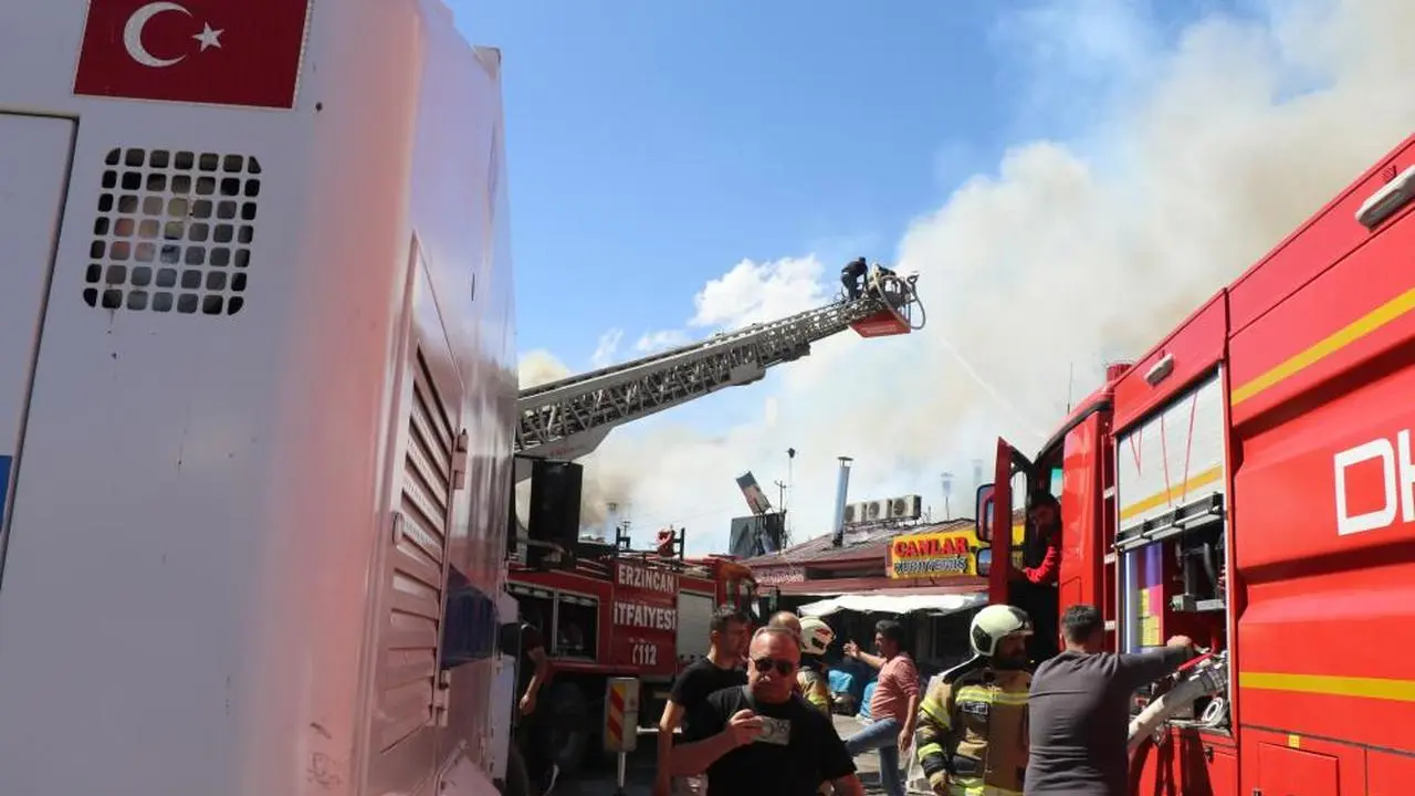 Erzincan'da Buğday Meydanı'nda bulunan ahşap dükkanların çatısında çıkan yangın, kısa sürede büyüyerek çevredeki iş yerlerine sıçradı. Karaağaç Mahallesi'nde meydana gelen olayda, tek katlı sıralı dükkanların çatısındaki alevler rüzgarın etkisiyle hızla yayıldı. İtfaiye, polis ve sağlık ekipleri olay yerine sevk edilerek yangına müdahale çalışmalarına başlandı. Vali Hamza Aydoğdu da olay yerinde incelemelerde bulunarak ekiplerin çalışmalarını yakından takip etti.