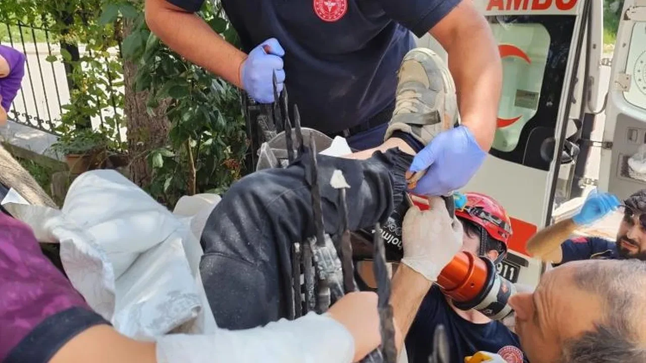 Bursa'nın İnegöl ilçesinde yaşanan talihsiz bir olayda, bahçe duvarından atlamaya çalışan 11 yaşındaki bir çocuk, bacağının koruma demirine saplanması sonucu yaralandı. İtfaiye ekiplerinin hızlı ve dikkatli müdahalesiyle kurtarılan çocuk, hastaneye kaldırılarak tedavi altına alındı. Olay anı, çevrede bulunan vatandaşlar tarafından saniye saniye kaydedildi. Polis ekipleri, olayla ilgili soruşturma başlattı.