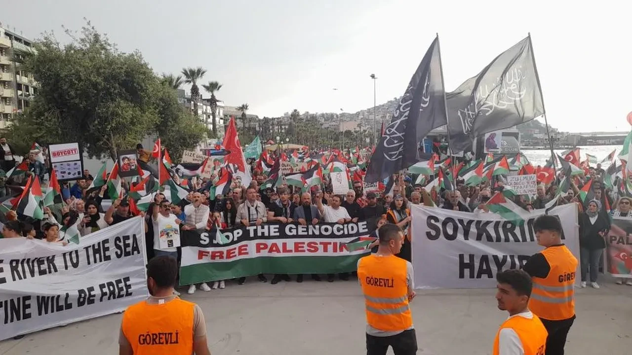 Kuşadası'nda yüzlerce kişi, Gazze'de yaşanan insanlık dramına dikkat çekmek ve İsrail'i protesto etmek amacıyla bir araya geldi. Kuşadası Marina önünden başlayan yürüyüşte, Filistin bayrakları ve anlamlı pankartlar taşındı. Katılımcılar, İsrail aleyhine sloganlar atarak Gazze'ye desteklerini gösterdi. Yürüyüşe katılanlara bazı vatandaşlar da alkışlarla destek vererek dayanışma örneği sergiledi.