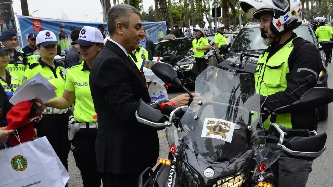 Vali Atilla Toros ve beraberindeki heyet, güzergahta denetim yapan polisleri ziyaret ederek sürücüleri trafik güvenliği konusunda uyardı. Öğrencilerle yakından ilgilenen Vali Toros, çocuklara kırmızı düdük ve tişört hediye ederek trafik bilincini aşılamaya çalıştı. Ayrıca başarılı jandarma ve polis personeline de başarı belgeleri takdim etti.