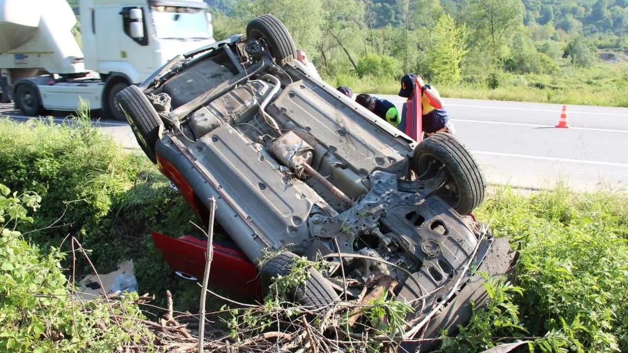 Sakarya'nın Akyazı ilçesinde meydana gelen trafik kazasında bir aile ölümden döndü. D140 karayolunda kontrolden çıkan otomobil takla atarak kullanılamaz hale geldi. Kazada sürücü ve araçta bulunan 19 aylık bir bebek de dahil olmak üzere toplam dört kişi yaralandı. Yaralılar, olay yerine sevk edilen sağlık ekiplerinin ilk müdahalesinin ardından hastaneye kaldırıldı.