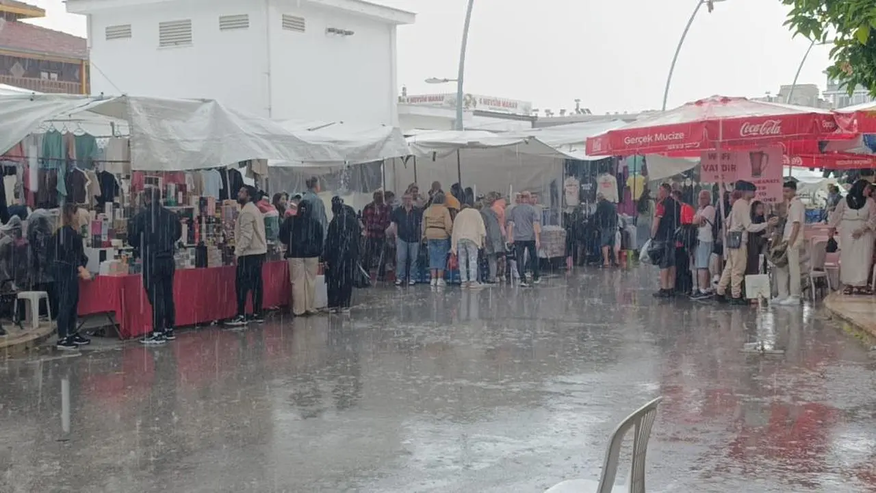 Antalya'nın Manavgat ilçesinde turistler, beklenmedik hava olaylarıyla dolu bir gün geçirdi. Sabah saatlerinde başlayan sağanak yağmur, semt pazarlarında alışveriş yapan turistleri ve esnafı zor durumda bıraktı. Ancak yağmurun ardından aniden beliren güneş, turistleri şaşkına çevirdi. Manavgat'ta yaşanan bu ani hava değişimi, turistlerin pazardaki keyifli anlarına farklı bir boyut kazandırdı.