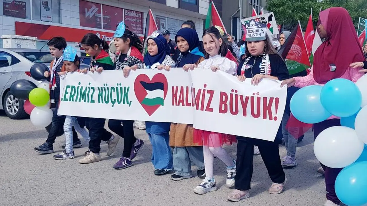 Karabük'te çocuklar, İsrail'in Gazze'ye yönelik saldırılarını ve Filistinli çocukların yaşadığı zulmü protesto etmek amacıyla anlamlı bir yürüyüş düzenledi. "Çocukların Sesi Olmak İçin Bir Araya Geliyoruz" sloganıyla düzenlenen etkinlikte, minik yürekler adalet ve barış çağrısında bulunarak meydanları doldurdu. Yürüyüş, Filistinli yaşıtlarının yaşadığı acılara dikkat çekerek, onların sesi olma amacını taşıdı.