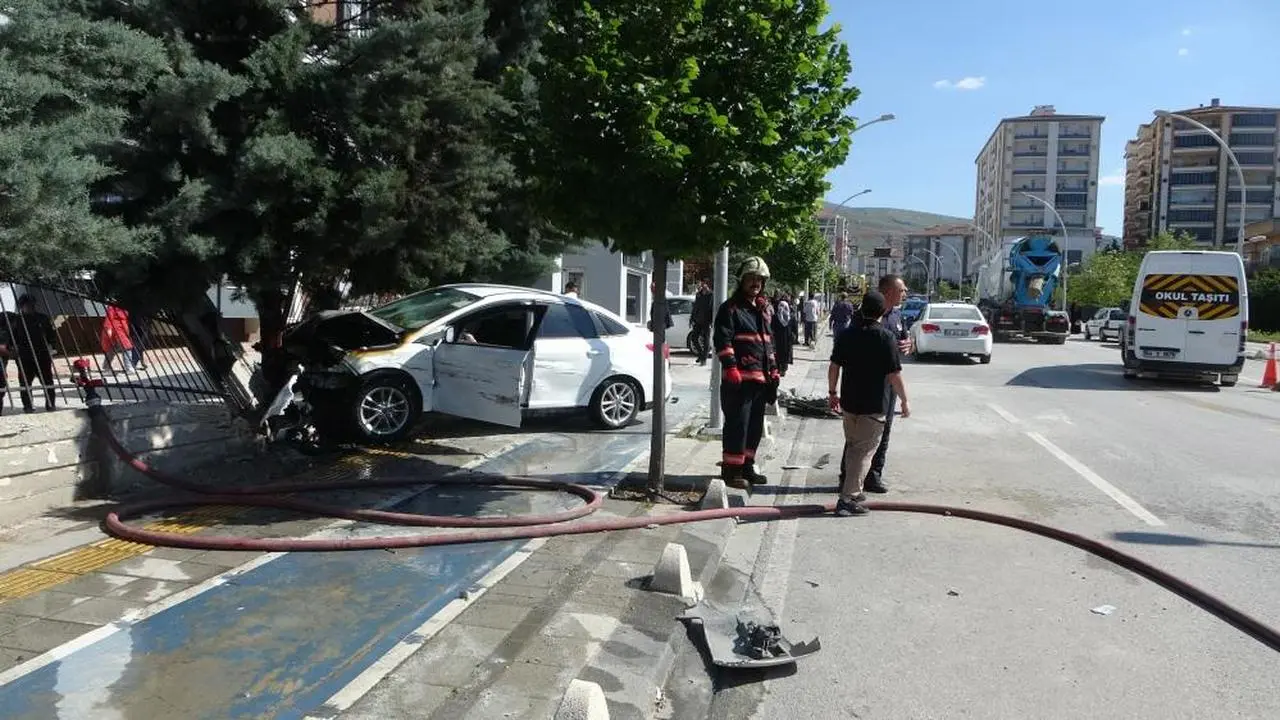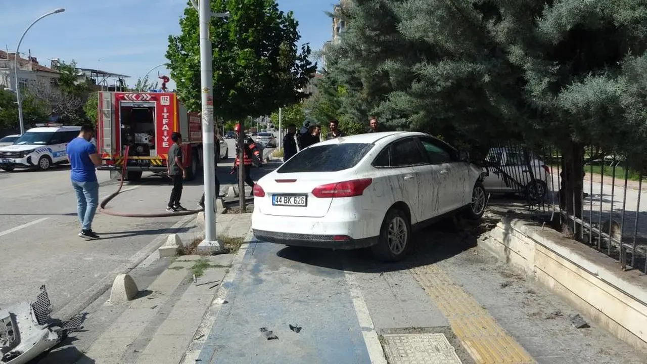 Çarpmanın şiddetiyle savrulan 44 BK 626 plakalı otomobil, bir site duvarına çarparak durabildi. Çarpmanın etkisiyle araçta yangın çıktı. Kısa sürede alevler yükselirken, çevredeki vatandaşlar durumu hemen itfaiye ve polis ekiplerine bildirdi.