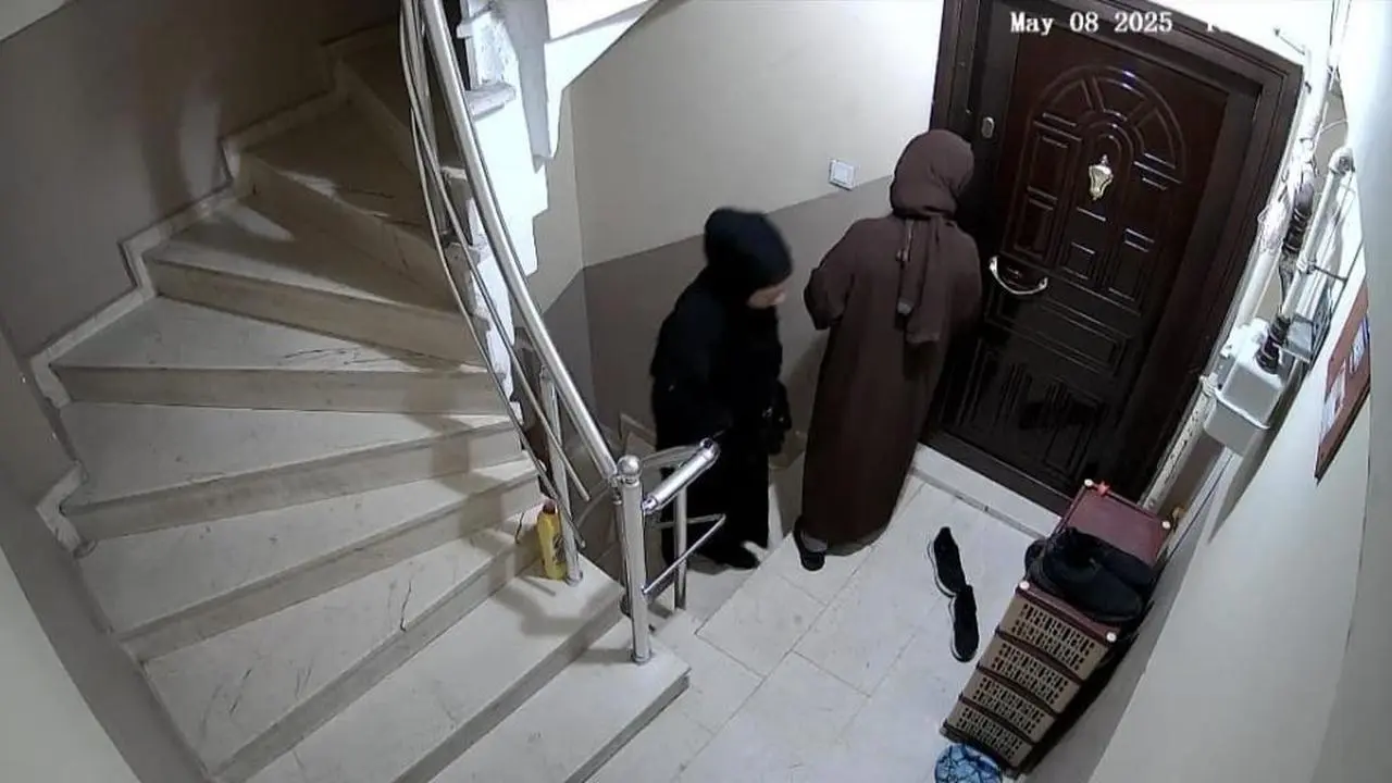 Görüntülerde, kadınlardan birinin apartmanın üst katlarına çıkarak dairelerin kapılarını kontrol ettiği görülüyor. Diğer kadın ise elindeki kartla bir dairenin kapısını açmaya çalışırken, aynı zamanda giriş kapısındaki ayakkabıları da inceliyor. Bu sırada, apartman sakinlerinden herhangi biriyle karşılaşmamaları dikkat çekiyor.